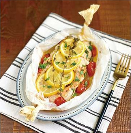 將魚用烘焙紙包起來,兩邊捲好確保密封不滲漏。