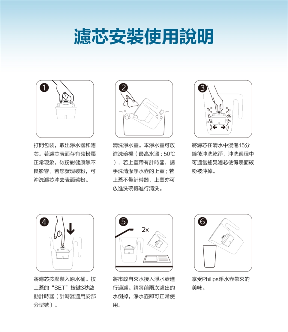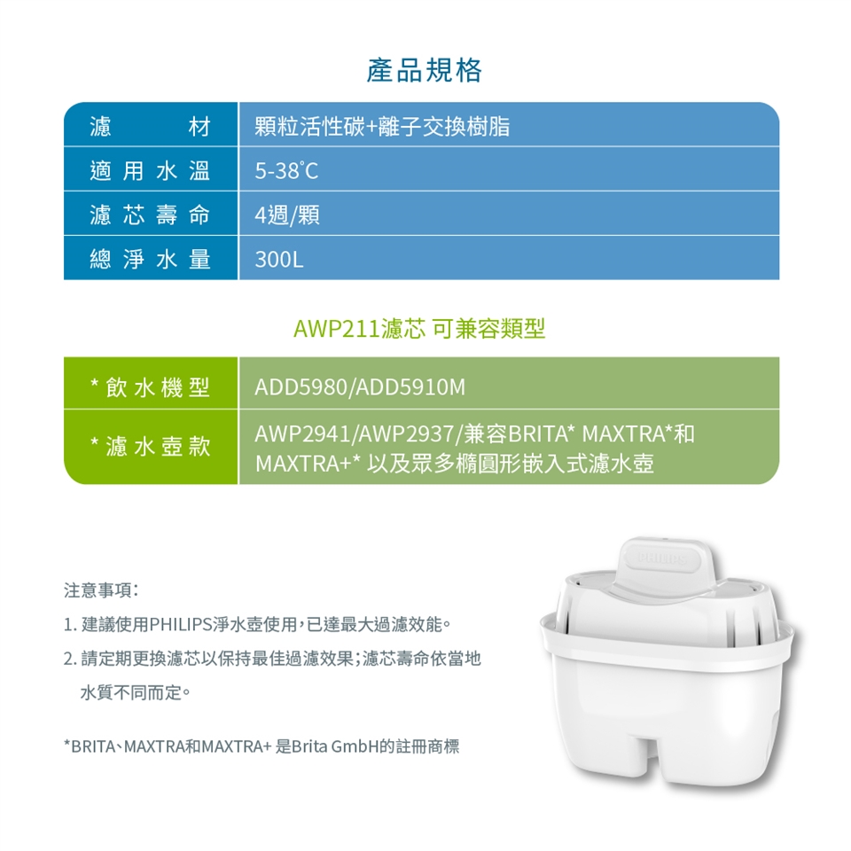 兼容於BRITA MAXTRA+濾芯的水壺 多重淨化,有效去除雜質、餘氯、水垢 複合濾芯,進口濾材,更換便捷 小體積,高效率 適用:PHILIPS AWP2937/AWP2941/ADD5980/ADD5910M 濾芯壽命:約4週