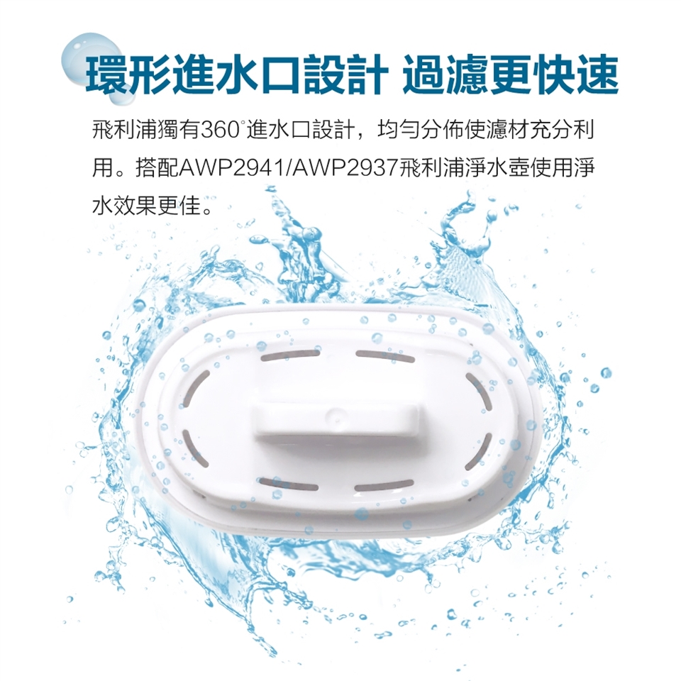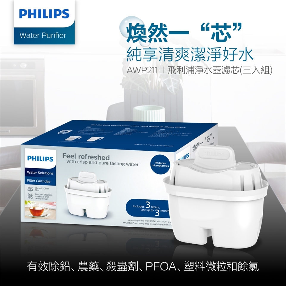 【PHILIPS 飛利浦】超濾淨水壺濾芯 三入組-通用版(AWP211)