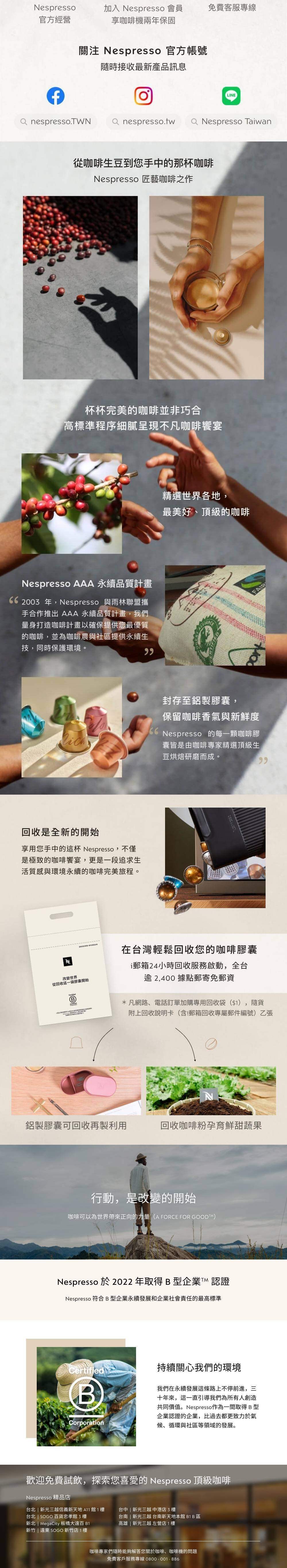 保固 | 加入 Nespresso 會員,享咖啡機原廠保固 2 年 |
