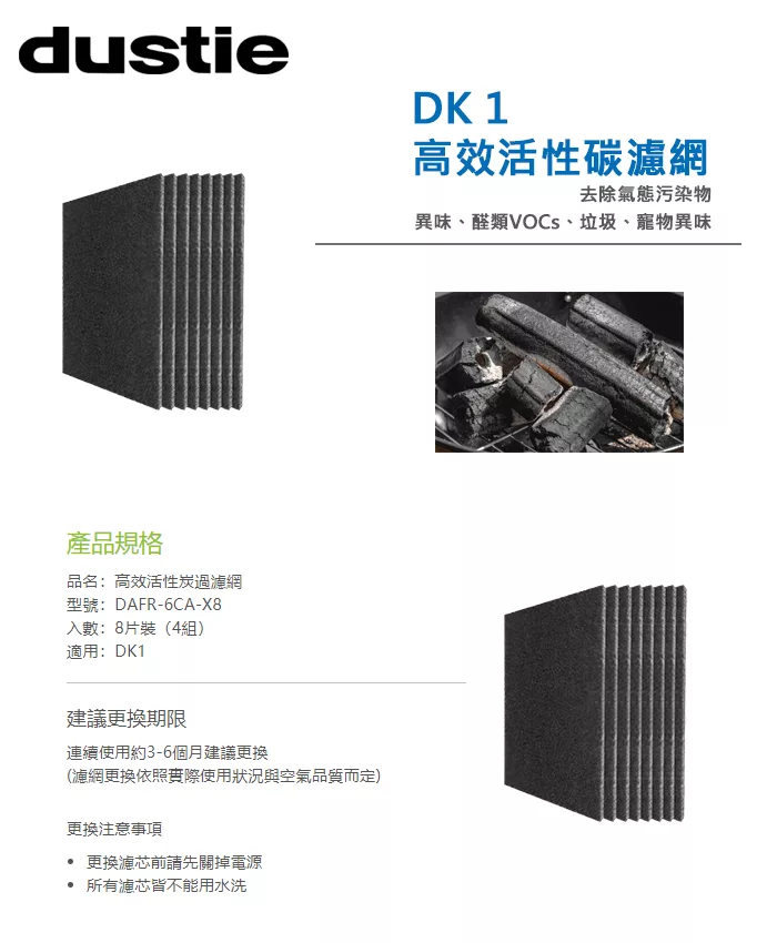 【Dustie 瑞典達氏】高效活性炭過濾網-一組8入 適用:DK1(DAFR-6CA-X8)