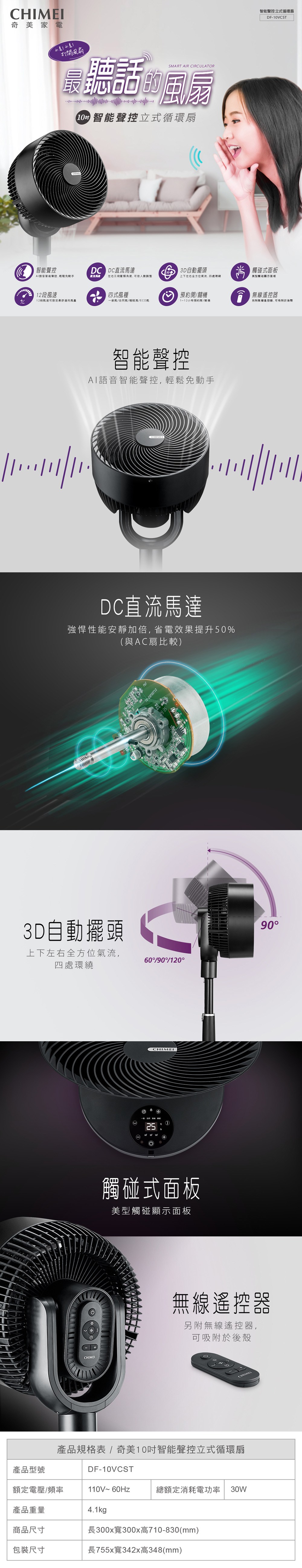 【CHIMEI 奇美】10吋 智能聲控立式循環扇(DF-10VCST)