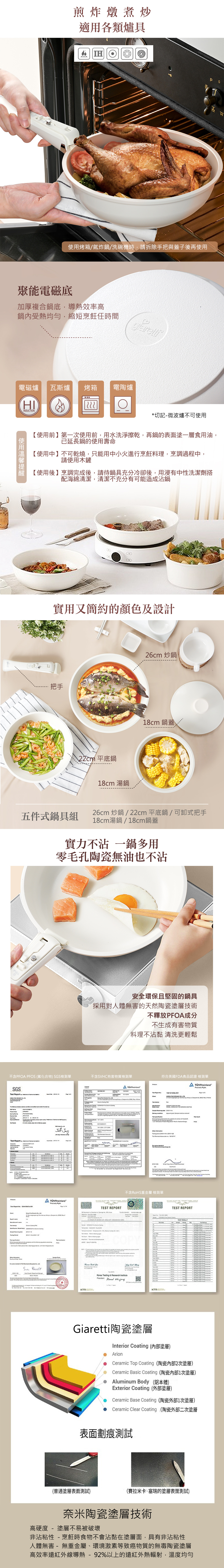 【Giaretti 珈樂堤】陶瓷塗層不沾鍋具五件組(GT-HWP05-W)
