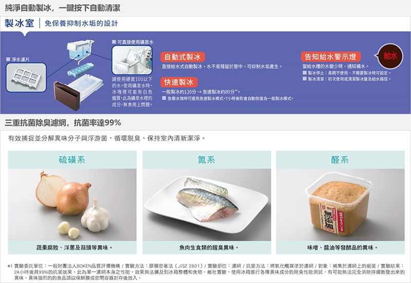 琉璃觸碰式操作面板,熄燈即隱藏,簡潔更有型 智慧鎖鮮 大型即鮮冷凍盤 三重抗菌除臭濾網,抗菌率達99%