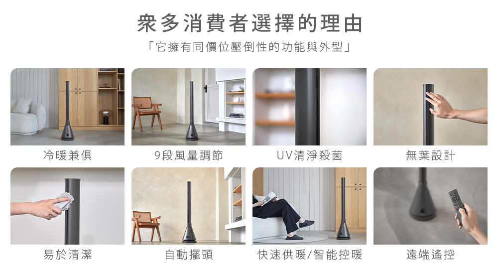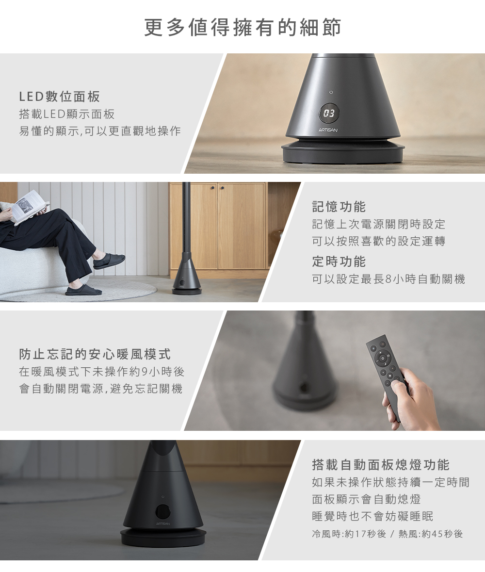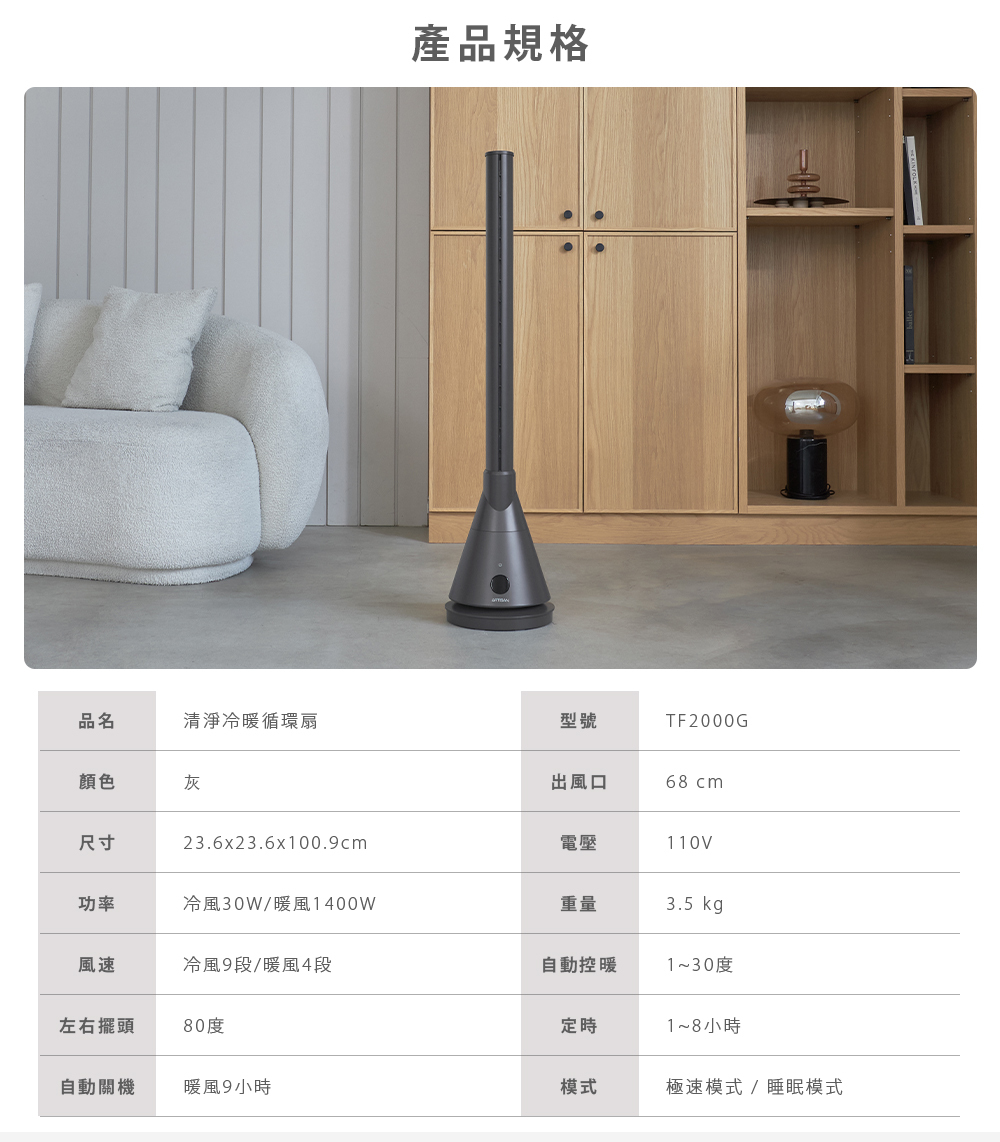 【Artisan 奧堤森】UV清淨冷/暖循環扇-靜謐灰(TF2000G)